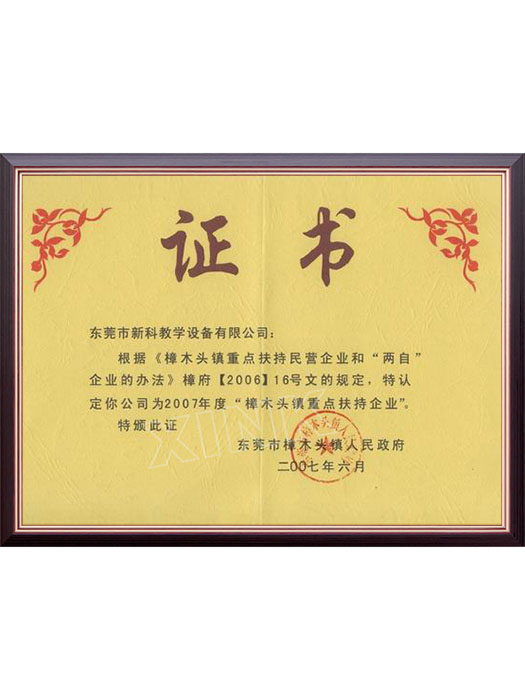 重点扶持证书